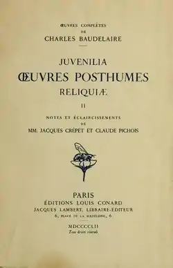 - Baudelaire : Œuvres posthumes, 2 tomes, annoté avec Jacques Crépet, Paris, éditions Louis Conard, Paris, 1952.