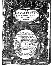 Son ouvrage, dont le titre complet est Il cavallerizo di Claudio Corte di Pavia, parait en 1562 à Venise chez Giordano Ziletti. Une deuxième édition sort du même éditeur en 1573, en même temps que l'édition française.