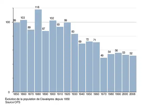 Le graphique suivant résume l'évolution de la population de Clavaleyres entre 1850 et 2008 [11] :