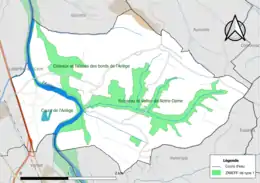 L’inventaire des zones naturelles d'intérêt écologique, faunistique et floristique (ZNIEFF) a pour objectif de réaliser une couverture des zones les plus intéressantes sur le plan écologique, essentiellement dans la perspective d’améliorer la connaissance du patrimoine naturel national et de fournir aux différents décideurs un outil d’aide à la prise en compte de l’environnement dans l’aménagement du territoire. Trois ZNIEFF de type 1[Note 3] sont recensées sur la commune[23] :