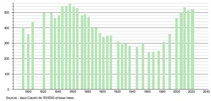 - Fiches Insee - Populations légales de la commune pour les années 2006, 2007, 2008, 2009, 2010, 2011, 2012, 2013, 2014, 2015, 2016, 2017, 2018, 2019, 2020 et 2021.