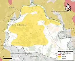 Le retrait-gonflement des sols argileux est susceptible d'engendrer des dommages importants aux bâtiments en cas d’alternance de périodes de sécheresse et de pluie. 50,3 % de la superficie communale est en aléa moyen ou fort (54,2 % au niveau départemental et 48,5 % au niveau national). Sur les 493 bâtiments dénombrés sur la commune en 2019, 245 sont en aléa moyen ou fort, soit 50 %, à comparer aux 57 % au niveau départemental et 54 % au niveau national. Une cartographie de l'exposition du territoire national au retrait gonflement des sols argileux est disponible sur le site du BRGM[13],[Carte 2].