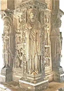 La statue centrale du pilier suivant a disparu et seules subsistent celles qui l’encadraient : le roi Salomon et la reine de Saba.