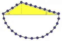 Le sin(α) doit être 2 fois aussi grand que sin(β), et cela n'est vrai que si la pente de gauche est aussi longue que la moitié de la pente de droite. Les deux forces le long des pentes à gauche et à droite à partir du haut sont en effet en équilibre: