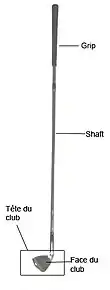 Au golf, le club est utilisé pour frapper la balle. Chaque club est composé d'un manche ou shaft, d'un grip où le golfeur va venir poser ses mains et d'une tête qui va être en contact avec la balle.