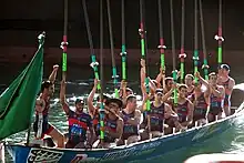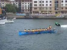 Virage de la traînière Bou Bizkaia lors d'une épreuve de la Ligue San Miguel.