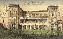 La première pierre du bâtiment a été posée en 1895. Le club militaire a été conçu par l'architecte tchèque Antonín Kolář et achevé par son collègue bulgare Nikola Lasarow en 1907. En mémoire de la guerre serbo-bulgare (1885-1886), une pierre du champ de bataille de Slivnitsa a été placée dans la fondation.