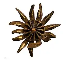 Les feuilles sont subsessiles, cunéiformes à obovales, opposées, de 5 à 20 cm de long et 5 à 10 cm de large, avec une texture de cuir et une marge entière. Les fleurs sont de couleur blanche à blanc verdâtre, jaune ou rose, avec 4 à 9 pétales, nombreuses étamines en nombre variable, style nul. Le fruit est une grosse capsule, globuleuse, brun verdâtre, valvulaire, coriace, qui s'ouvre pour libérer 7 à 9 graines rouges, charnues.