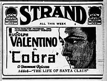 Publicité pour le film Cobra (1925)