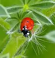 La coccinelle à sept points (Coccinella septempunctata) est une espèce de coccinelles de l'écozone paléarctique, courante en Europe. Surnommée « bête à bon Dieu[2] » depuis le Moyen Âge, elle est perçue comme un porte-bonheur et a souvent des surnoms à connotation religieuse : « poulette de la Madone » en Italie, « scarabée de Marie » ou « petit veau du Seigneur » en allemand (en allemand : Marienkäfer ou Himmelskuchlichen), « bestiole ou oiseau de la Vierge » en anglais (en anglais : ladybug ou ladybird)[3].