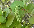 Le fruit du raisinier est une fausse-drupe[alpha 1], comestible. Il a la particularité d'être formé de l'ensemble de sépales accrescents, épaissis et colorés[2],[3].