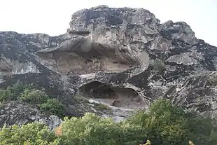 Le soleil apparaissant le matin à l'est derrière la colline, les oscillations de ses levers se laissent observer toute l'année depuis le massif volcanique en contrebas. Les emplacements des trois aménagements majeurs du massif semblent en rapport avec les mouvements solaires : une salle carrée qui est éclairée par le soleil levant au printemps et lors du solstice d’été, une vaste cavité, creusée dans la roche, qu’atteignent les premiers rayons en période d’équinoxe d’automne et peut-être du solstice d’hiver, et enfin, une cavité creusée sur sa face ouest qui reçoit les rayons du soleil couchant[2]. En ces endroits, la roche volcanique a été travaillée afin de dégager des formes en escalier, des bassins, des bancs, des trônes... Certaines cavités sont ornées de peintures rupestres rouges, datées peut-être du Néolithique ou de l'Âge du bronze.