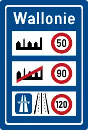 - Règle générale : 90 km/h en Wallonie, 70 km/h en Flandre (depuis le ) et 70 km/h à Bruxelles (depuis le )