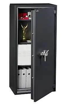 Un coffre-fort est un meuble servant à protéger des objets de valeur d'un vol ou d'une destruction accidentelle (dégâts des eaux, incendie, etc.). Il est généralement placé dans un lieu où il sera facile à trouver pour que l'intrus s'occupe en partie du coffre-fort et non du reste de la maison et est conçu pour ne pouvoir être ouvert que par le possesseur des biens protégés, grâce à des matériaux difficiles à fracturer et un système d'ouverture basé sur une serrure qui est le plus souvent à clef ou à combinaison.