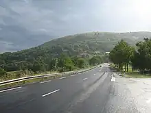 Le col de l'Escrinet et le serre de Suson vu de Blandine. Sur la gauche se trouvent le grand virage de la route nationale et le petit tunnel du tramway. | |||