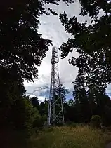 Un pylône autostable, propriété de France Télécom et utilisant un réseau GSM en 900 MHz, est implanté en contre-haut avec une hauteur au sol de 29 mètres[3].