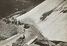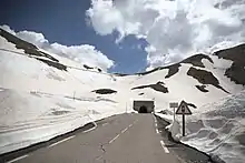 La route franchissant ce col de haute montagne est fermée à la circulation en hiver. Le déneigement intervient à la fin du printemps.