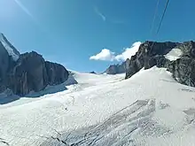 Vue en direction du sud du col du Gros Rognon depuis la télécabine Panoramic Mont-Blanc. | ||||