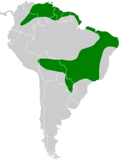 Le Colibri guaïnumbi est présent en Colombie, en Argentine, au Venezuela, au Pérou, en Bolivie, sur l'île de Trinité, au Brésil, au Guyana, en Guyane, au Suriname et au Paraguay.