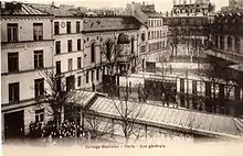 Avant , le premier collège Stanislas était situé dans la rue Notre-Dame-des-Champs, entre la rue Stanislas et la rue Bréa, à l'emplacement du boulevard Raspail.