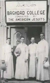 Le collège de Bagdad a été fondé en 1932[2] :228 par William A. Rice, SJ[3] (qui deviendra plus tard évêque à Belize, en Amérique centrale)[4]. Le pape Pie XI a demandé la création d'une école catholique à Bagdad pour desservir la population musulmane, et l'église a envoyé quatre jésuites pour établir cette école[5]. L'un d'entre eux était le p. John Mifsud, d'origine maltaise. L'école avait à l'origine quatre professeurs jésuites et 107 étudiants. La devise de l'école était "Une école irakienne pour les garçons irakiens"[2]. :228 L'école était initialement répartie dans dix bâtiments [2] :228 situés au 11/45, rue Murabba'ah à Bagdad, sur la rive est du Tigre, sur un 4 acres (1,618742568 ha) de terre dans la partie nord de la ville[5]. Le père Léo Guay a conçu les bâtiments du campus en s’inspirant de l’architecture irakienne[2]. :228 Les cours se sont déroulés en anglais. NPR a déclaré qu’à l’époque il s’agissait du "premier lycée" de Bagdad[6]. Peu de temps après sa fondation, l'équipe enseignante comprenait 33 jésuites et 31 professeurs laïcs irakiens[2]. :228 Certains des jésuites parlaient couramment l'arabe [2] :229 et d'autres avaient mis en place des cours d'arabe pour essayer de les enseigner eux-mêmes[2]. :230 Le corps étudiant est devenu plus de 1.100[2]; :228 La plupart des étudiants étaient des enfants de l'élite irakienne[7]. Historiquement, environ 20% des étudiants ont reçu des bourses[2]. :228 Environ la moitié des étudiants étaient musulmans et l'autre moitié étaient chrétiens[2]. :229 Juifs étaient aussi des étudiants. Les élèves du collège de Bagdad comprenaient des Iraquiens, des Arméniens, des Égyptiens, des Iraniens, des Palestiniens et des Syriens[2]. :234