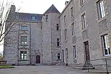 Toutefois le Grand Séminaire de Saint-Pol-de-Léon, fondé en 1680[22], qui formait et sélectionnait les étudiants entrant à l'Université de Paris, continue après 1763 de fonctionner dans le bâtiment que Mgr de la Bourdonnaye lui avait fait élever en 1708[23], aujourd'hui siège du lycée privé, 2 rue Cadiou. Depuis 1681, il accueille dans une annexe, actuel 4 rue Verderel, un collège non universitaire, l'École de Léon fondée en 1580[24] par Mgr de Neufville sous l'invocation de Kelou Mad au lieu-dit Prat Cuic[25], à la sortie ouest de la ville, et ouvert aux enfants de l'aristocratie ou de la bourgeoisie qui ne se destinent pas nécessairement à la prêtrise. L'enseignement des mathématiques y avait une place réservée.