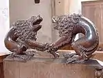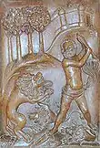 Sur sa base sont représentés des sujets profanes, classés au registre des monuments historiques depuis 1904.