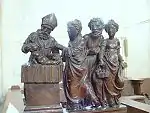 ![]() Cette œuvre du XVIe siècle, située dans le chœur, représente le Christ entouré de la Vierge et de saint Pierre. Jésus tient dans sa main le globe terrestre surmonté d'une croix. Marie porte l'enfant Jésus. |