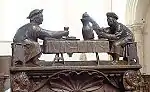 Les panneaux en bas-reliefs et les groupes en ronde bosse qui les couronnent représentent des scènes bibliques. Le style renaissance marque un retour à l'art antique, grec ou romain. On trouve un foisonnement de rinceaux et d'éléments végétaux.