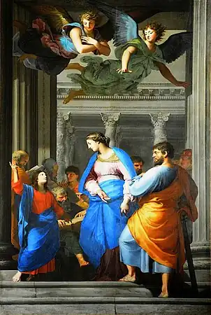 L'église est dépositaire de trois toiles (vers 1612) de Quentin Varin, l'auteur des Noces de Cana et maître de Nicolas Poussin : Le triomphe de la Vierge, le Martyre de Saint-Clair et le Martyre de Saint-Vincent et d'une toile de Jacques Stella : Jésus enfant retrouvé au Temple par ses parents (1640)[7], originellement destinée à la chapelle Saint-François-Xavier du noviciat des Jésuites de Paris aujourd'hui détruite.