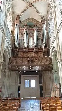 Le buffet d'orgue est en bois sculpté de 1573, il représente des scènes bibliques, mais aussi des scènes de la mythologie et des représentations des sciences connues à l'époque.