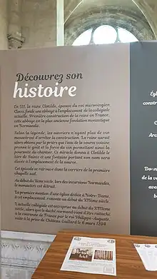 Sainte Clotilde est particulièrement vénérée en ce lieu depuis qu'en 1656, l'église reçut en relique une côte de la sainte[11].