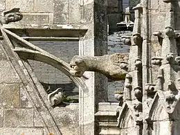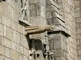 - Le , le clocher de l'horloge sur la façade s'effondre en pleine messe et emporte avec lui une grande partie de la façade et de la première croisée de la nef. La flèche construite 4 ans auparavant était trop lourde et les fondations de l'édifice trop anciennes. La restauration de la collégiale est terminée en 1885, la façade est reconstruite en reprenant le maximum de blocs anciens. La chaire extérieure est du XVe siècle (une rareté architecturale), bien que partiellement démontée et remontée à l'identique[8].