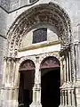 On peut notamment admirer les colonnes torses qui alternent avec les colonnes droites, les voussures à cinq cordons sculptés du grand portail et leur décor d'inspiration végétale, l'élégance des nombreuses statuettes.