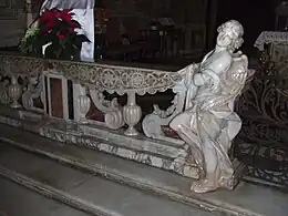- Maître-autel de Domenico Bocciardo (1799) et sa balustrade de communion (ses quatre anges et le voile ondulant sur le plateau)