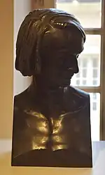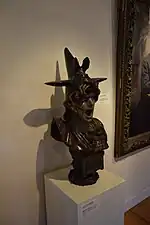 Buste de Bellone | Jean-Léon Gérôme | vers 1899 | Bronze à plusieurs patines, bois peint, verre et porcelaine | 87 × 47 × 30 cm | Donation Morot-Dubufe en 1945 | Salle Gérôme | [1],[12] |