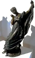 Tanagra | Jean-Léon Gérôme | 1890 | Bronze patiné vert et doré, fonte Siot-Decauville | h. 150 cm | Don de la Société La Comté à la Ville de Vesoul en 1913 | Salle Iselin | [1] |