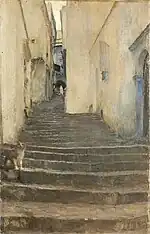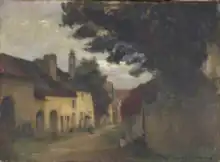 Paysage d'Orient (Étude : Village au bord de l’eau) | Jean-Léon Gérôme | 1868 | Huile sur carton marouflé sur toile | 24 × 32 cm | Donation Morot-Dubufe en 1945 | Salle Delarbre | [1],[4] |