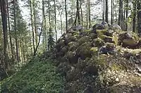 La colline est située à environ cinq kilomètres du centre de Sulkava[2],[3]. La colline est très escarpée sur trois côtés et, à l’est, en pente plus douce, il reste des vestiges d’une ancienne ancienne muraille. Le mur mesure environ 120 mètres de long et sa fondation rocheuse est très solide: il est constitué de grosses pierres et il encore une hauteur de près de trois mètres à certains endroits. Le sommet de la colline se situe maintenant à environ 55 mètres au-dessus du niveau du lac. Il existe de nombreuses cavités sous la surface du lac et sur les parois de la montagne[4].
