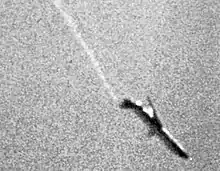 Le vol 498 d'Aeroméxico plongeant vers le sol, juste après la collision, près de Los Angeles. | |||