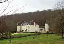 - Le château, qui comprend un donjon du XIe siècle intégré au corps du bâtiment reconstruit en 1765.