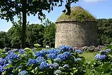 Il a la forme d'une tour ronde de pierres irrégulières, avec un toit en pierre. Il a été construit avant le château actuel, donc avant 1750[2].