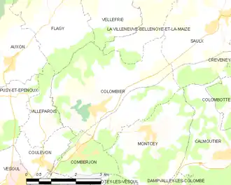 Colombier est situé dans l'aire urbaine de Vesoul, qui totalise en 2008, 59 288 habitants[15].