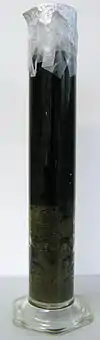 - Ensuite, il faut compléter la colonne avec de la boue neutre jusqu'à 2,5 cm du bord de l'éprouvette et mélanger délicatement pour enlever les bulles d'air. La colonne doit reposer une demi-heure.