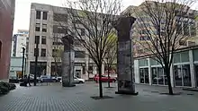Le groupe architectural Rigga réussit tout de même à convaincre les autorités de conserver les colonnes, qui restèrent en entrepôt jusqu'en 2005. Elles furent alors réinstallées dans le district, placées selon les photographies de 1999. La ville de Portland se réjouit de cette initiative "célébrant une période de l'histoire du district et permettant à l'art d'atteindre une audience plus large."[3]