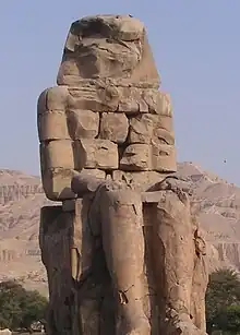 Les colosses de Memnon sont deux sculptures de pierre monumentales situées sur la rive occidentale de Thèbes, sur la route qui mène à la nécropole thébaine. Elles sont les derniers vestiges du gigantesque temple des millions d'années d'Amenhotep III, construit durant la XVIIIe dynastie, qui n'existe plus de nos jours. Ils sont situés au lieu-dit Kôm el-Hettan.
