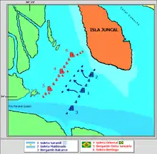 Le capitaine Mariath, à la tête d’un escadron de dix navires, avait reçu l’ordre de s’emparer de l'île Martín García, d’intercepter l’arrière-garde de l’escadre argentine et de prêter main-forte à la troisième division si nécessaire[20],[21]