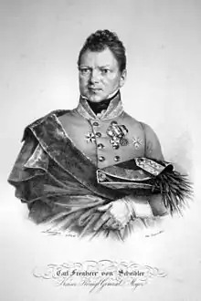 Du côté adverse, les restes du corps volant de Scheibler[9] reçurent du général de Wrede l'ordre de servir d'extrême avant-garde aux Autrichiens de Frimont qu'on avait fait venir de Mulhouse, par suite de la résistance de Belfort et de Huningue, pour couvrir, du côté du Nord, les attaques tentées infructueusement jusqu'ici contre ces deux places[10].