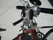 À droite : ancienne manette à trois vitesses de dérailleur arrière.
