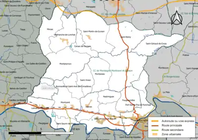 Localisation en 2013 dans le département de la Dordogne de la communauté de communes Montaigne Montravel et Gurson. | |